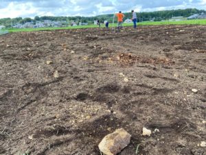 菌床を皆さんで畑に撒き、さらに耕起。大豆を撒く準備ができました。