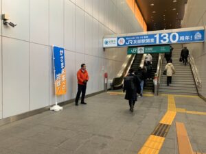 友部駅通路は小学生の通学路になっていて小学生にも「おはようございます」「いってらっしゃい」のあいさつ運動