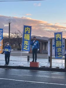 そして街頭演説は、12時から笠間支所前、16時からポレポレ前で行いました。