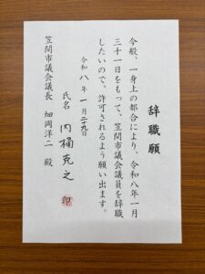 私の思い 2026/1/31 (土)本日1月31日をもって議員辞職