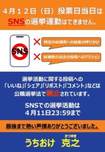 選挙 2026/4/11 (土) New4月12日投票日当日 SNS選挙運動禁止