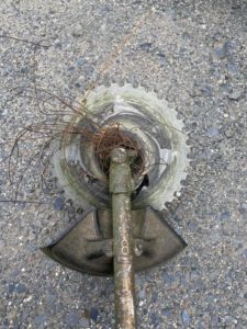 夕方、ぼちぼち草刈り。学校が再開し、通学路の気になるところの草刈りです。草刈りをしていたら、「ガリガリ」と金属音❗️なんと針金が‼️仕方なく、自宅に戻り、ペンチで針金を切って除去してから再開。