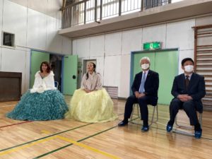 友部ロータリークラブとして、初めての試み。クリスマスが近いことから、クリスマス音楽でのハンドベルや手ばたき、足踏みなどを加えて楽しく。「アナと雪の女王」の歌では、立ち上がり踊る生徒も!