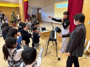 うたと遊戯、ミニコンサート🎵、脳トレゲーム、稲田の今昔物語、そして昔あそび。地域の方々と園児の交流!楽しくできました。時間が相当落ちてしまったのが反省点です。