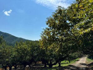 やまが和栗日本一プロジェクト事業の説明を市役所で受け、スイーツ店、5haの栗圃場の現地へ。栗圃場は山間地の厳しい条件の場所ですが、地域のリーダーが中心となって、取り組んでいます。