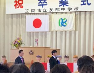 私は母校の友部中学校の第53回卒業式に出席。5クラス171名の卒業式、義務教育の区切りを迎えました。
